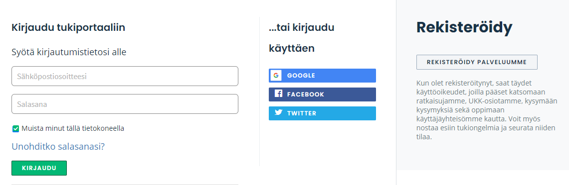 Voit osallistua communityn keskusteluihin, seurata communityn viestejä ja osioita sekä seurata tukipyyntöjäsi, kun rekisteröidyt Passeli Meritin tukisivuille. Rekisteröityminen on nopeaa. Avaa tukiportaali osoitteessa: https://support.passelimerit.fi/fi/support/home ja napsauta sivun oikealta ylälaidasta Kirjaudu tukeen.