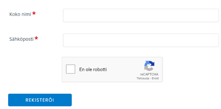 Syötä nimesi ja sähköpostiosoitteesi, napsauta En ole robotti ja napsauta lopuksi Rekisteröi.